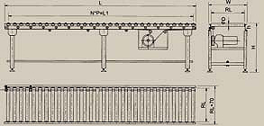 技术参数 型 式:M□ 驱动方式:“V”带或平摩擦带(带宽50mm) 辊筒规格:直径38/50/60 辊筒间距:标准档75 100 150 输送速度:max 30m/min 输送长度:max 12m 功 率(kw):0.2 0.4 0.75 输送能力:max 50kg/m 注:1 图中仅是标准型式,型号说明M-直径。 2 机架型材,辊筒材质等可根据需要选定。 3 磨擦带可以是平磨擦带也可以是三角带(弯道采用三角带或(0)带。