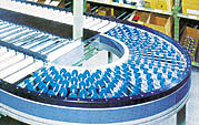 链板输送机牢固、经久、耐用滚轮转弯输送机多层间进行垂直连续搬送