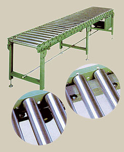 技术参数 型 式:M□ 驱动方式:“V”带或平摩擦带(带宽50mm) 辊筒规格:直径38/50/60 辊筒间距:标准档75 100 150 输送速度:max 30m/min 输送长度:max 12m 功 率(kw):0.2 0.4 0.75 输送能力:max 50kg/m 注:1 图中仅是标准型式,型号说明M-直径。 2 机架型材,辊筒材质等可根据需要选定。 3 磨擦带可以是平磨擦带也可以是三角带(弯道采用三角带或(0)带。