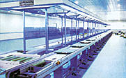链板输送机牢固、经久、耐用滚轮转弯输送机多层间进行垂直连续搬送